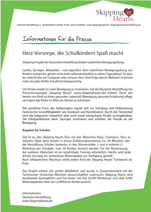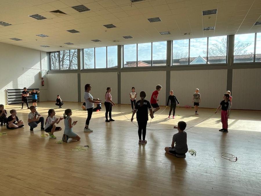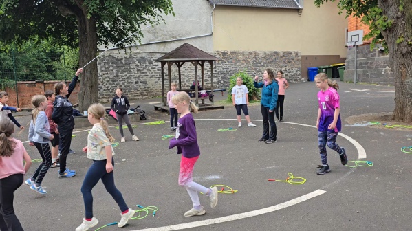 Am Freitag, den 23.05.2025 nahmen die Schülerinnen und Schüler der Jahrgangsstufe 4 unserer Schule wieder am "Skipping Hearts" Projekt der "Deutsche Herzstiftung" teil.
