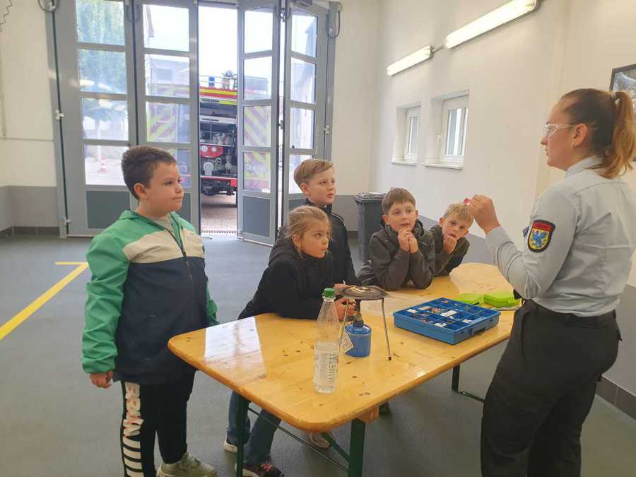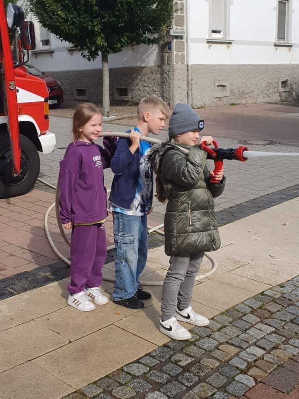 Im Rahmen der Brandschutzerziehung besuchte die Klasse 3 am 30.09.2025 die Villinger Feuerwehr. Die Kinder durften bei Experimenten zuschauen, einen