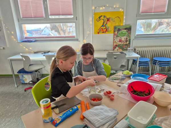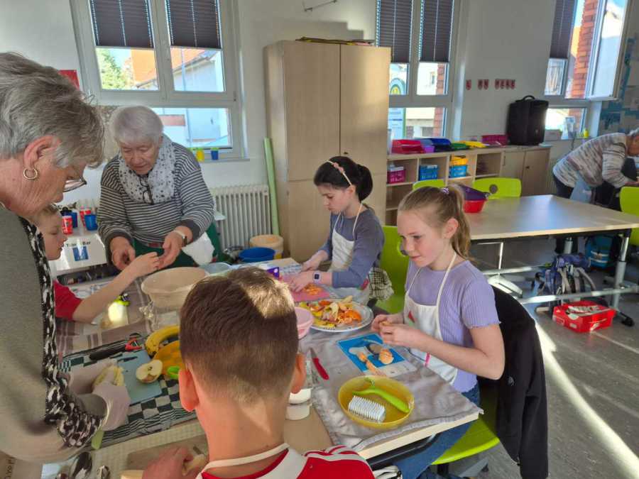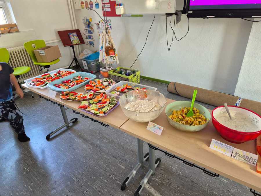 Tatkräftige Unterstützung erhielt die Klasse dabei von den Landfrauen aus Villingen. Gemeinsam wurden verschiedene leckere und gesunde Speisen zubereitet. Besonders kreativ ging es bei den „Brotgesichtern“ zu, bei denen die Kinder ihre Brote fantasievoll belegten. Außerdem standen ein frischer Nudelsalat sowie ein süßer Schlemmerquark auf dem Programm.